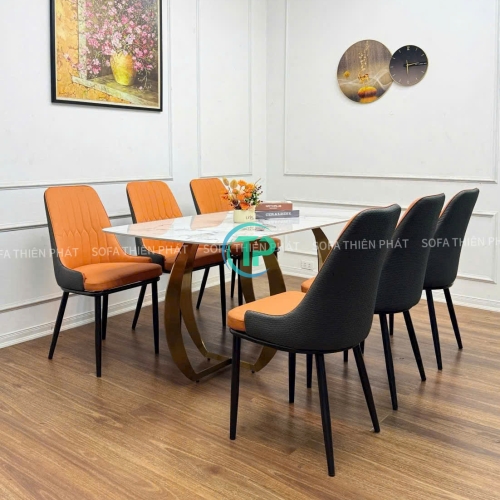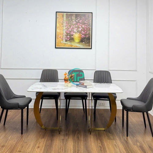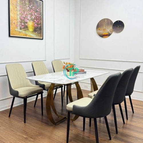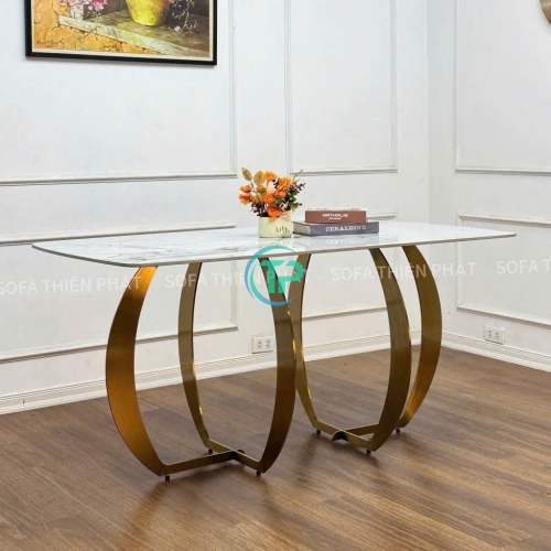 Bàn Ăn Mặt Đá Ceramic Bóng Nhập Khẩu Chân Inox Mạ Vàng PVD TPBA08