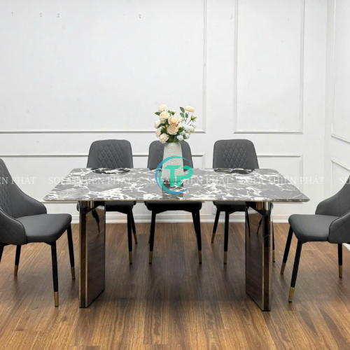 Bàn Ăn Mặt Đá Chữ Nhật 1m8 Chân Inox Bóng Cao Cấp TPBA020