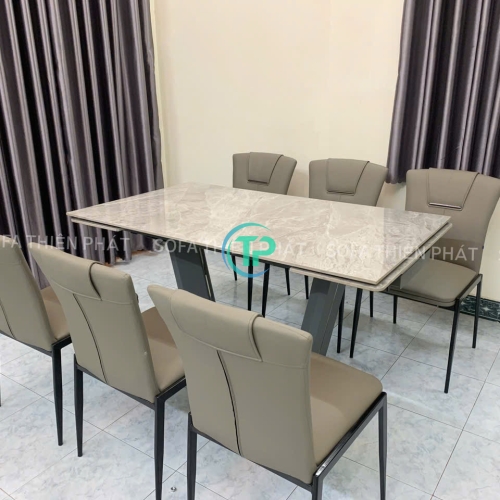 • Bộ bàn ăn: 6 Ghế + Bàn mặt đá Ceramic chống trầy, chống Ố