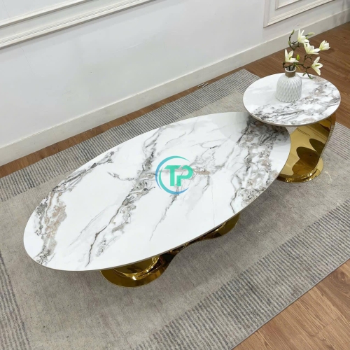 Bàn Trà Cặp Khung Inox Mạ PDV Mặt Đá BTN027