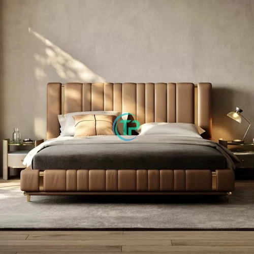 Giường Ngủ Bọc Da Viền Vàng Bắc Âu TPGD-016