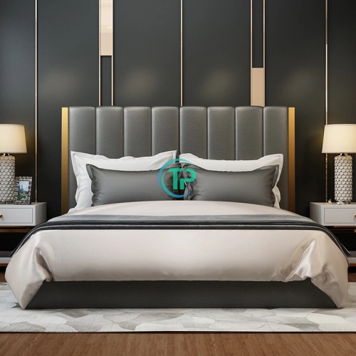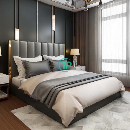 Giường Ngủ Bọc Da Viền Vàng Bắc Âu TPGD-017