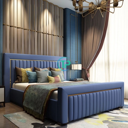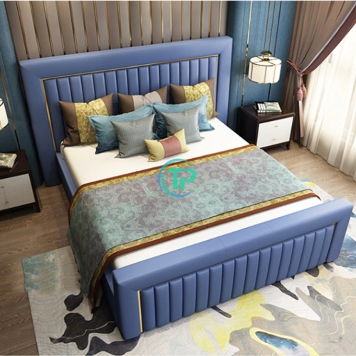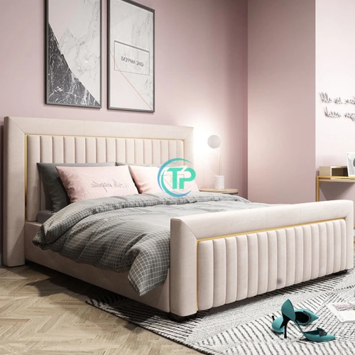 Giường Ngủ Bọc Da Viền Vàng Hiện Đại TPGD-018